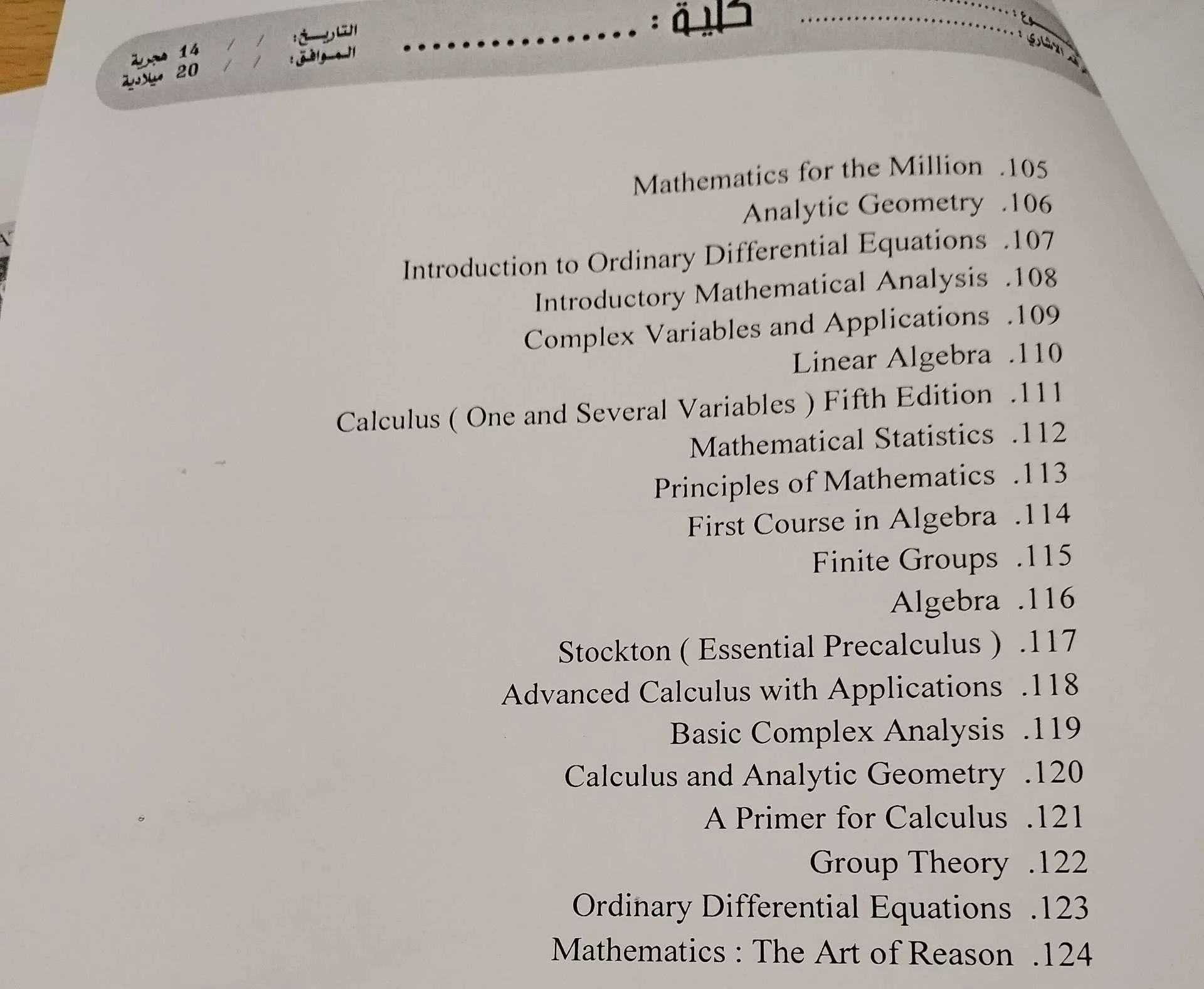 الدكتور كمال تبرع بمكتبته الشخصية للقسم وهذه المكتبة تتألف من عدد 124 كتاب في الرياضيات والإحصاء.