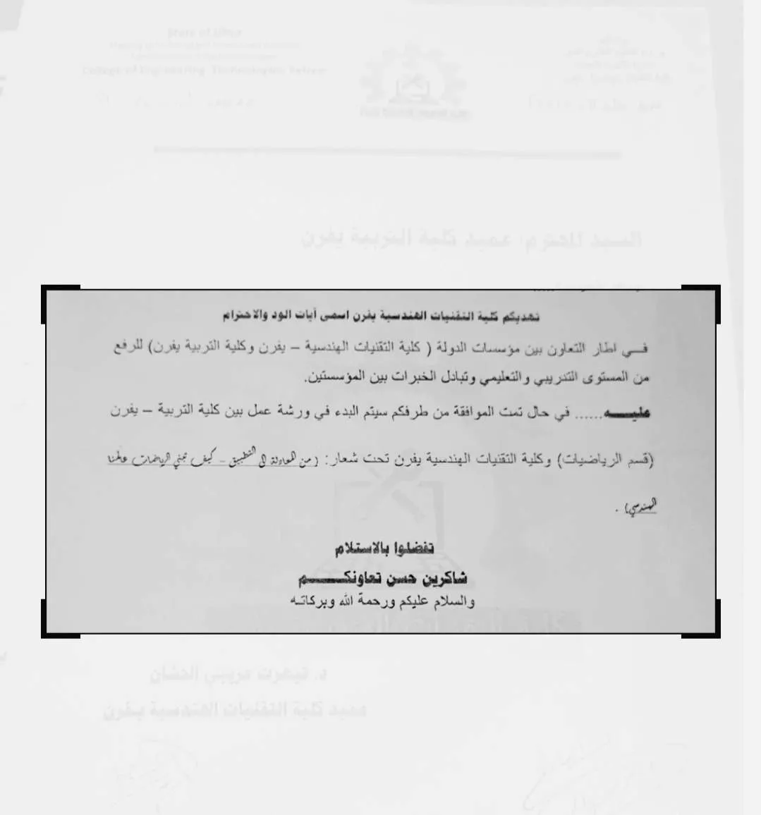 تلقى اليوم قسم الرياضيات والإحصاء بالكلية دعوة كريمة من كلية التقنيات الهندسية بيفرن للمشاركة في ورشة عمل تحت شعار (من المعادلة إلى التطبيق : كيف تبني الرياضيات عالمنا الهندسي).