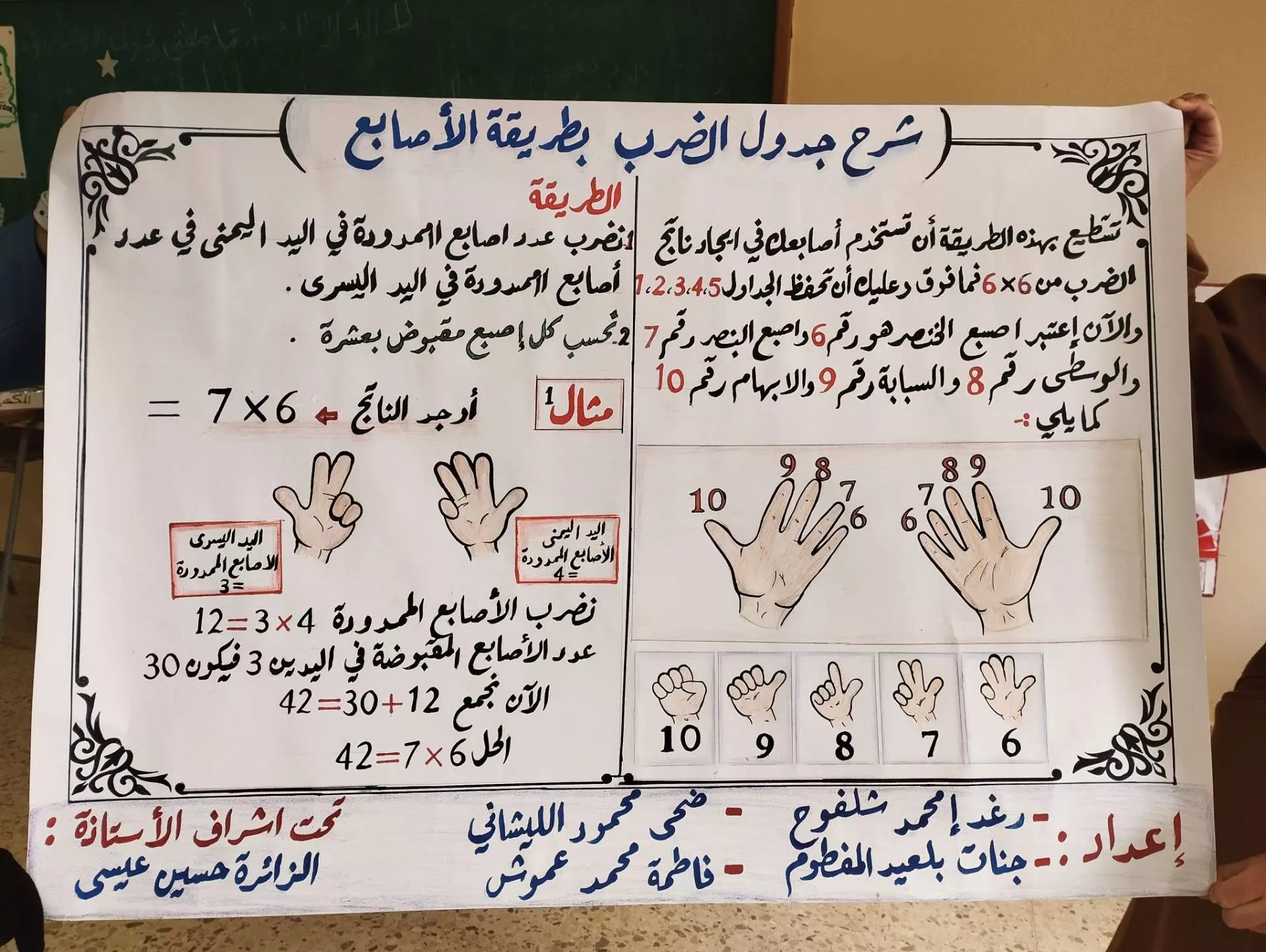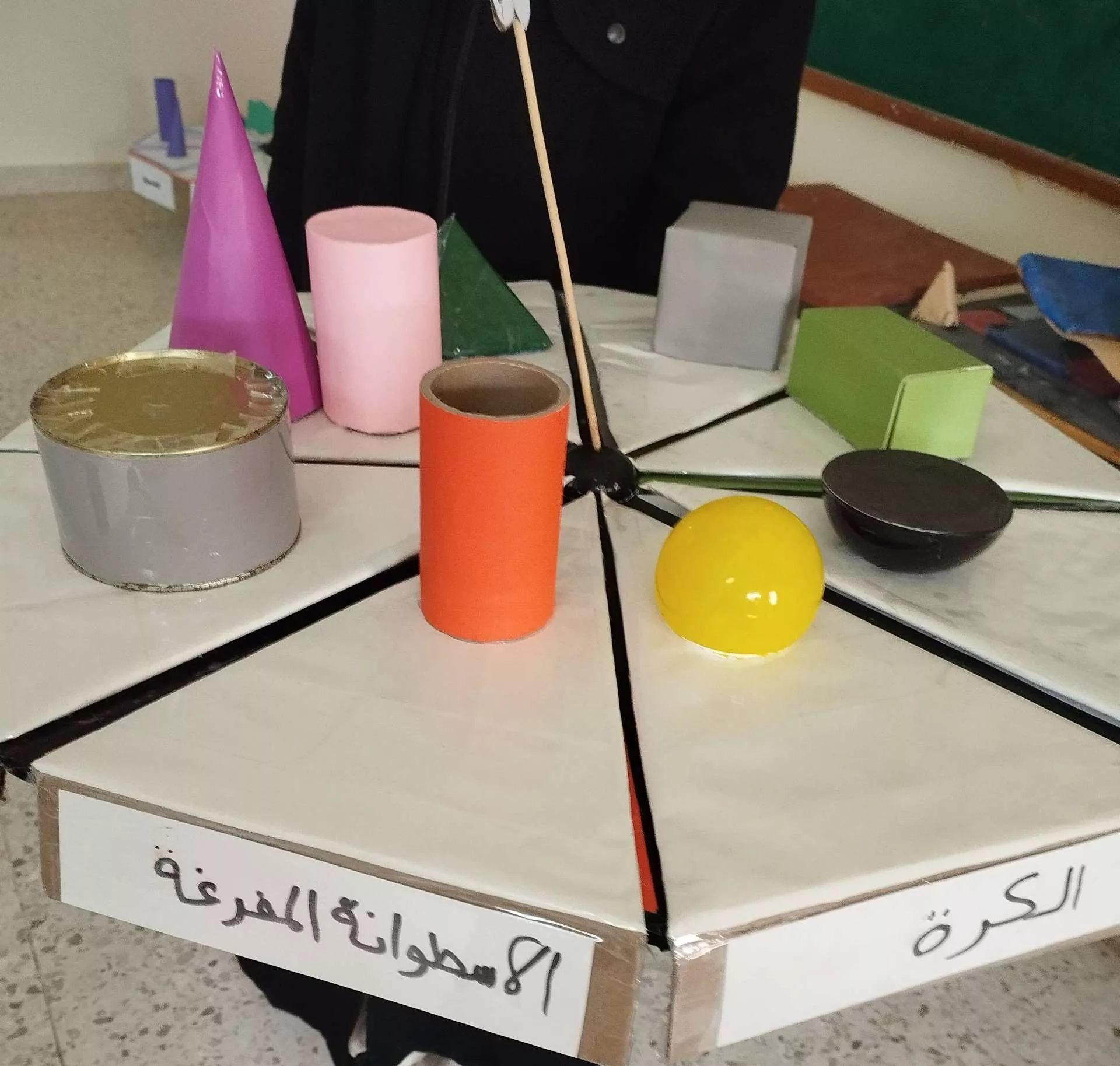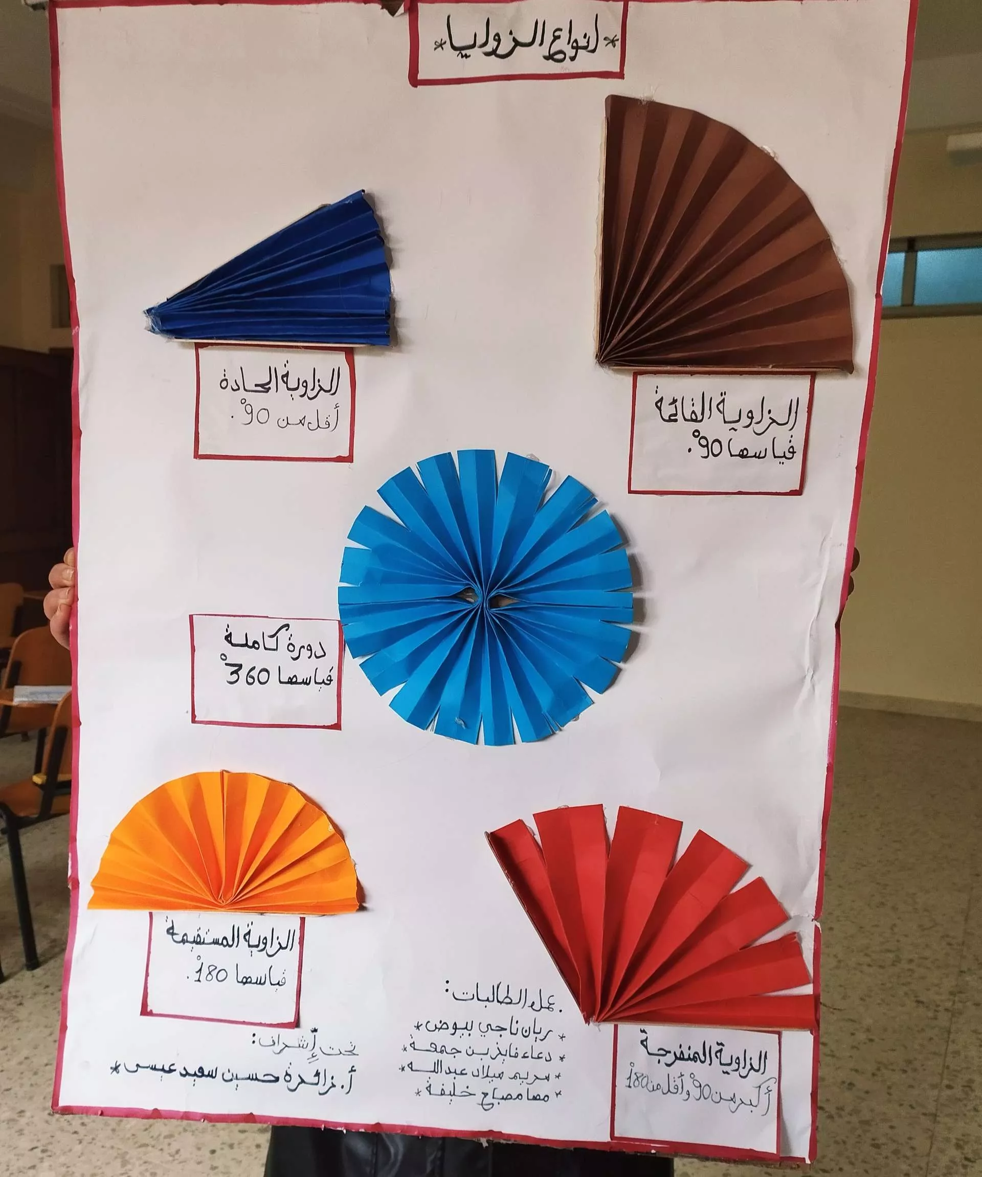 Fifth-grade students undertook a remarkable activity: designing educational tools for mathematics and demonstrating the importance of using these tools to simplify and explain operations, angles, shapes, and solids to school students, making mathematics lessons more engaging for both teachers and students.